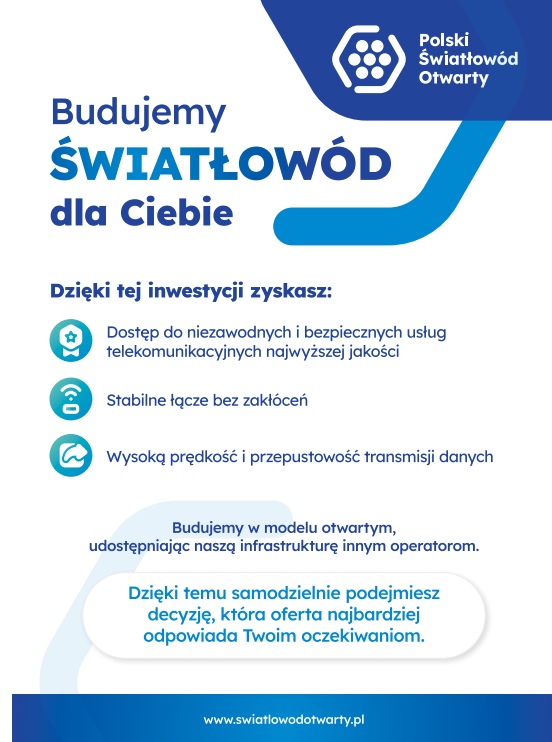 • Wspólne korzyści: Inwestycja w światłowód to inwestycja w przyszłość, która przyniesie korzyści wszystkim mieszkańcom. Więcej informacji o inwestycjach Polskiego Światłowodu Otwartego znajduje się na stronie internetowej www.swiatlowodotwarty.pl.