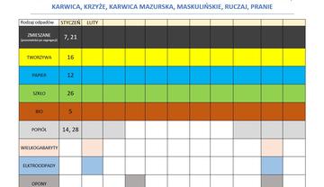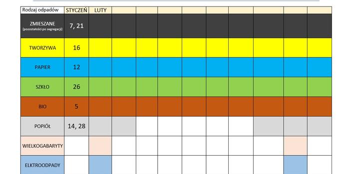 Harmonogram odbioru odpadów komunalnych w styczniu 2026 r.