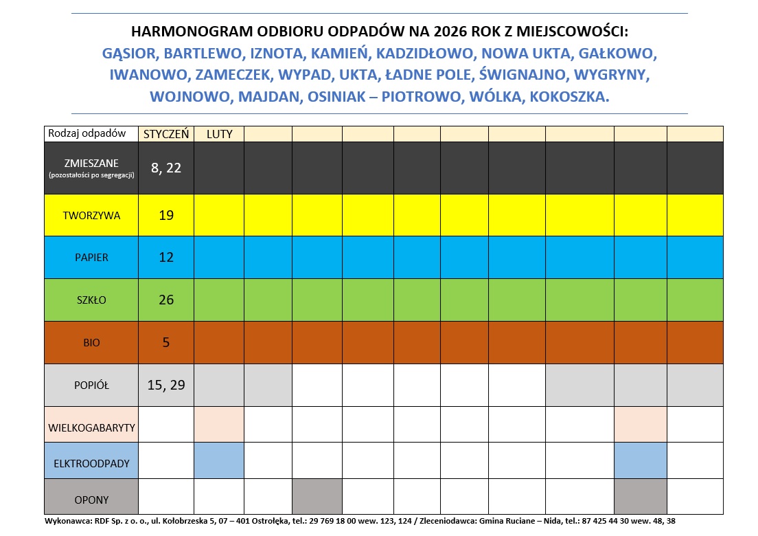 z siedzibą w Ostrołęce. Oznacza to zmianę dotychczasowego operatora usługi, którym była firma Remondis Warmia – Mazury. W najbliższym czasie nowy Wykonawca dostarczy właścicielom nieruchomości objętych systemem, harmonogram odbioru odpadów na 2025 rok oraz worki przeznaczone do zbiórki odpadów segregowanych. Do czasu dostarczenia przez nowego Wykonawcę worków, prosimy o gromadzenie zebranych odpadów w workach dostarczonych przez firmę Remondis.
