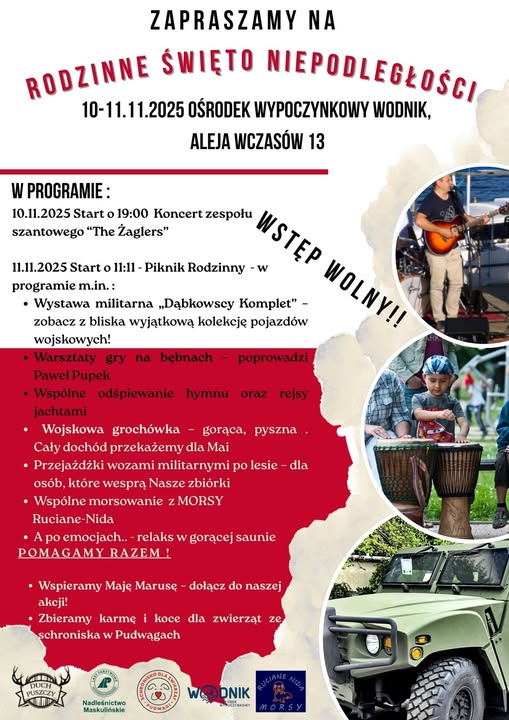godz. 12:00 - uroczyste złożenie kwiatów pod kamieniem wolności oraz wspólne odśpiewanie Hymnu - Urząd Miasta i Gminy Ruciane-Nida