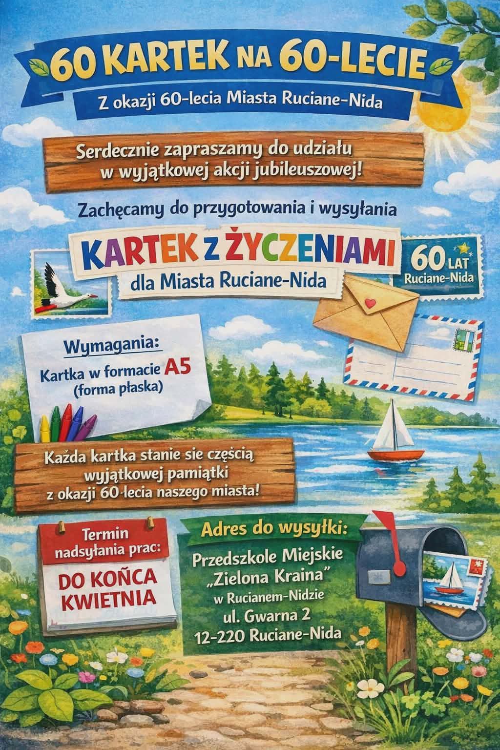 Z okazji 60-lecia Rucianego-Nidy zapraszamy do udziału w wyjątkowej akcji Przedszkola Miejskiego "Zielona Kraina" w Rucianem-Nidzie!